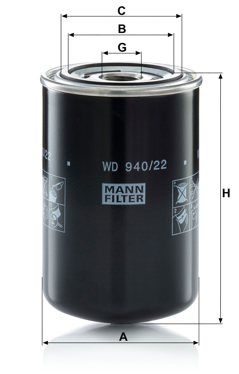 The genuine HiFi Filter SH 62172 Hydraulic Filter is HiFi's replacement to the Mann Filter WD 940/22.