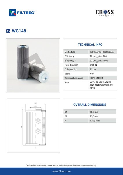 Engineered with their high performance media and a durable design, the WG148 provides reliable and consistent performance over its lifespan, even in harsh operating environments. When you order from FilterFinder, you can trust that you are getting a reliable and high-quality replacement filter that will keep your system running smoothly.