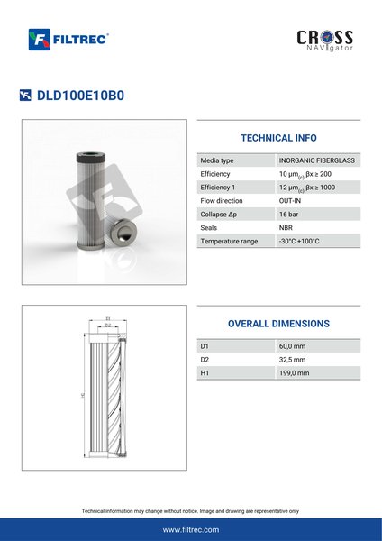 The efficiency of the element is shown using the Micron (µ) and Beta (β) ratings. The micron rating indicates the size of the particle being filtered and the beta rating the efficiency, calculated as 1/β.