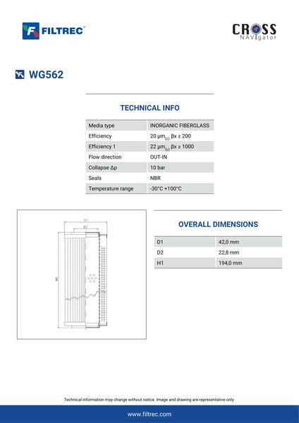 Genuine Filtrec WG562. This Filtrec element is designed to meet or exceed the quality and performance of brand OEM’s ensuring superior filtration performance and long-lasting durability.