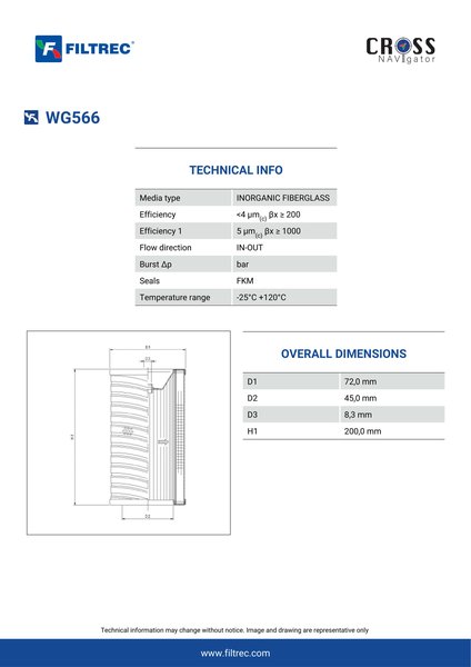 Engineered with their high performance media and a durable design, the WG566 provides reliable and consistent performance over its lifespan, even in harsh operating environments. When you order from FilterFinder, you can trust that you are getting a reliable and high-quality replacement filter that will keep your system running smoothly.