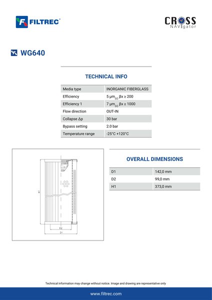 Genuine Filtrec WG640. This Filtrec element is designed to meet or exceed the quality and performance of brand OEM’s ensuring superior filtration performance and long-lasting durability.