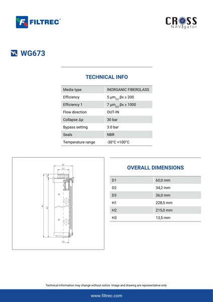 Genuine Filtrec WG673. This Filtrec element is designed to meet or exceed the quality and performance of brand OEM’s ensuring superior filtration performance and long-lasting durability.