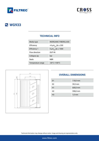 Engineered with their high performance media and a durable design, the WG933 provides reliable and consistent performance over its lifespan, even in harsh operating environments. When you order from FilterFinder, you can trust that you are getting a reliable and high-quality replacement filter that will keep your system running smoothly.