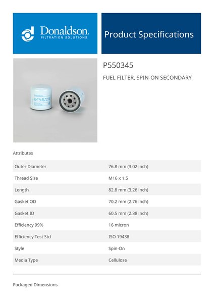 The efficiency of the element is shown using the Micron (µ) and Beta (β) ratings. The micron rating indicates the size of the particle being filtered and the beta rating the efficiency, calculated as 1/β.