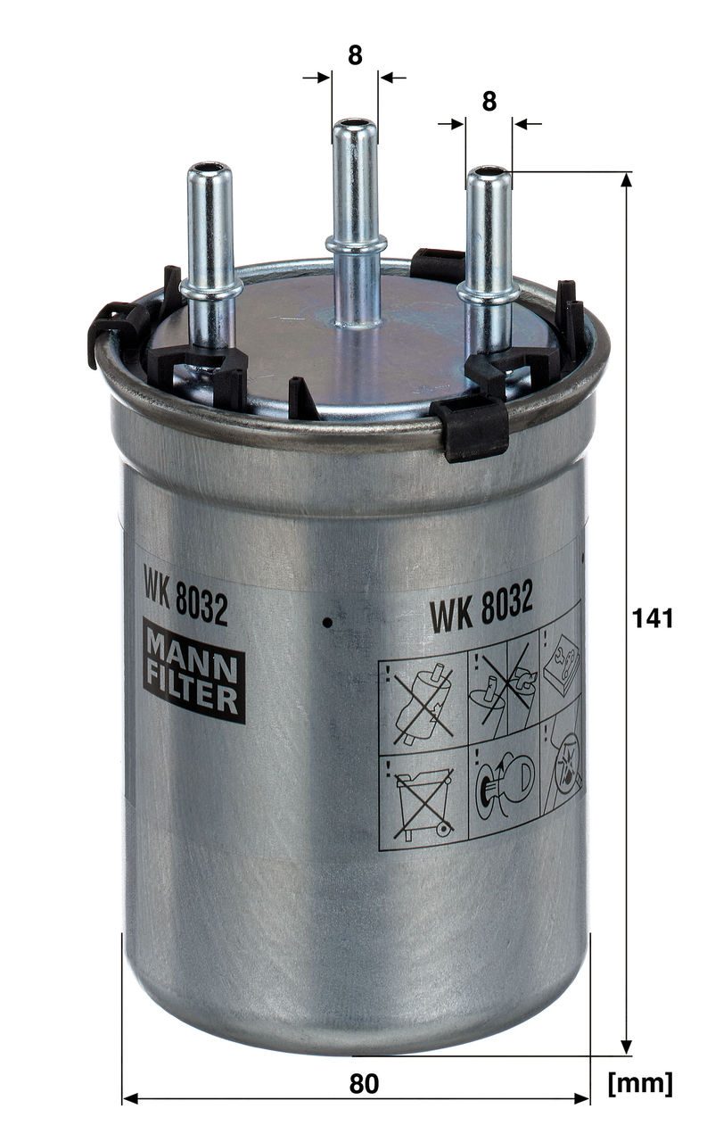 High-quality MANN-FILTER fuel filters remove unwanted and damaging dirt particles from the fuel and thus prevent possible damage. Thanks to the highest degree of separation and sealing, the fuel filter ensures functional reliability and optimum protection during the entire maintenance interval.Specification