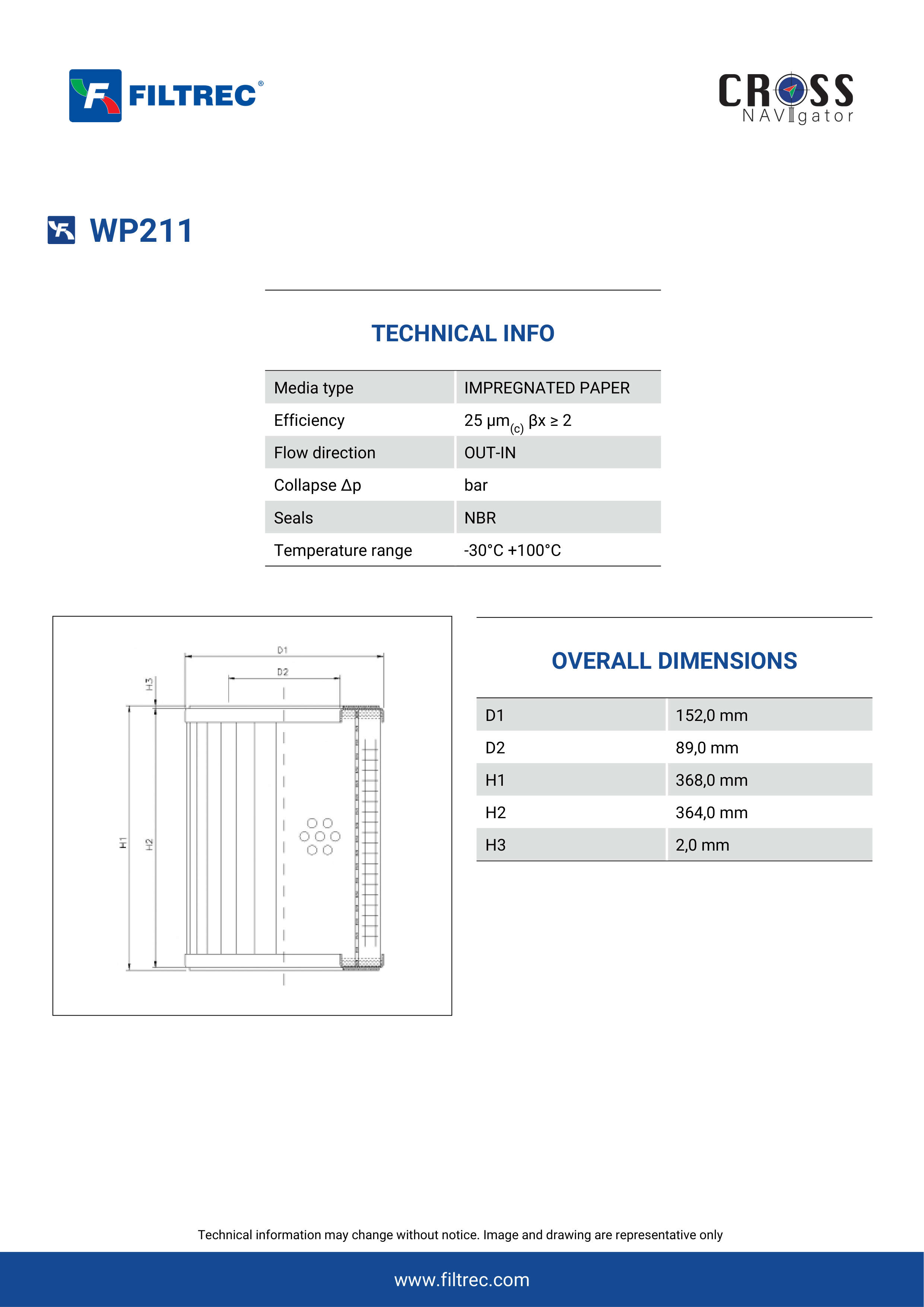 Genuine Filtrec WP211. This Filtrec element is designed to meet or exceed the quality and performance of brand OEM’s ensuring superior filtration performance and long-lasting durability.