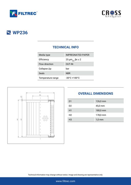 Engineered with their high performance media and a durable design, the WP236 provides reliable and consistent performance over its lifespan, even in harsh operating environments. When you order from FilterFinder, you can trust that you are getting a reliable and high-quality replacement filter that will keep your system running smoothly.
