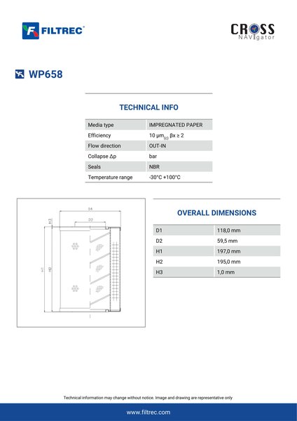 Genuine Filtrec WP658. This Filtrec element is designed to meet or exceed the quality and performance of brand OEM’s ensuring superior filtration performance and long-lasting durability.