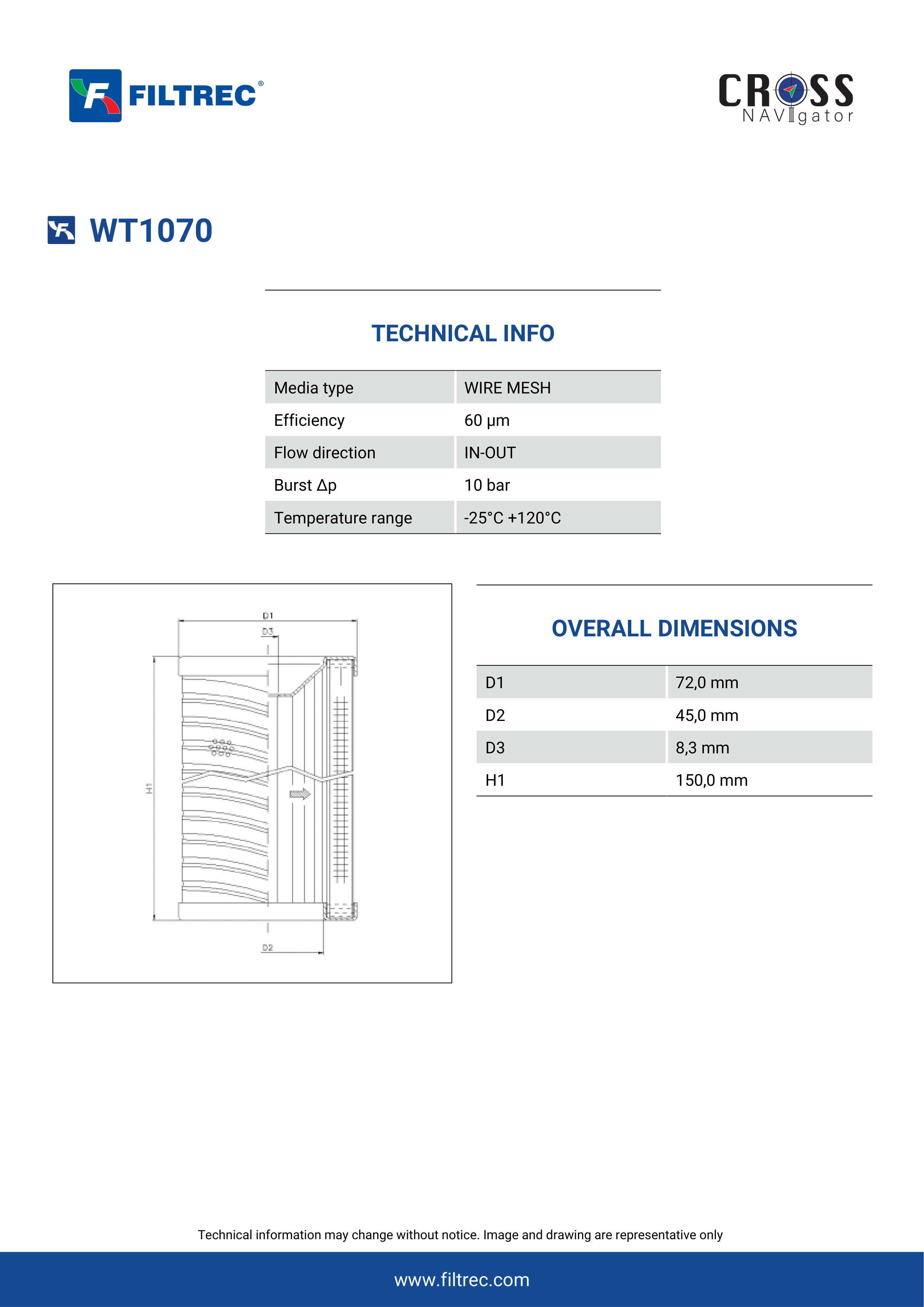 The efficiency of the element is shown using the Micron (µ) and Beta (β) ratings. The micron rating indicates the size of the particle being filtered and the beta rating the efficiency, calculated as 1/β.