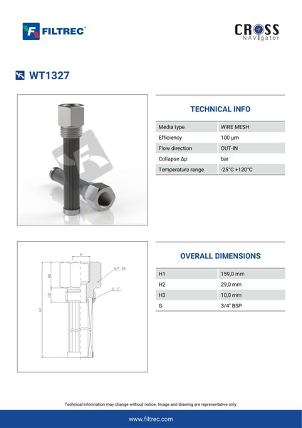 Engineered with their high performance media and a durable design, the WT1327 provides reliable and consistent performance over its lifespan, even in harsh operating environments. When you order from FilterFinder, you can trust that you are getting a reliable and high-quality replacement filter that will keep your system running smoothly.