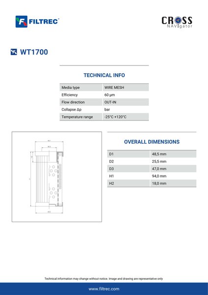 The efficiency of the element is shown using the Micron (µ) and Beta (β) ratings. The micron rating indicates the size of the particle being filtered and the beta rating the efficiency, calculated as 1/β.