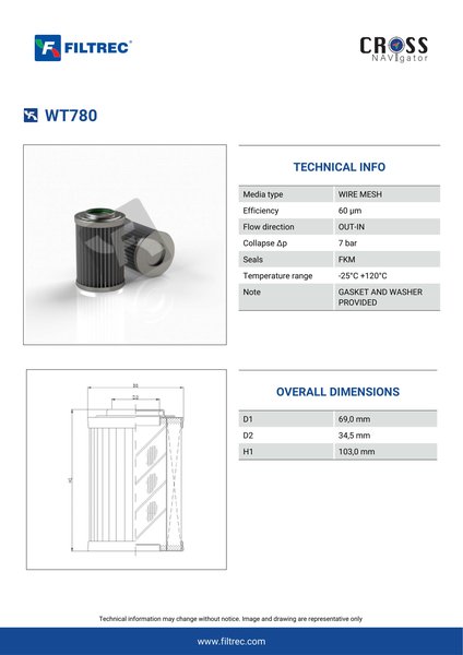 Engineered with their high performance media and a durable design, the WT780 provides reliable and consistent performance over its lifespan, even in harsh operating environments. When you order from FilterFinder, you can trust that you are getting a reliable and high-quality replacement filter that will keep your system running smoothly.