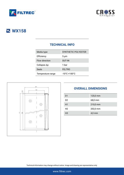 Genuine Filtrec WX158. This Filtrec element is designed to meet or exceed the quality and performance of brand OEM’s ensuring superior filtration performance and long-lasting durability.
