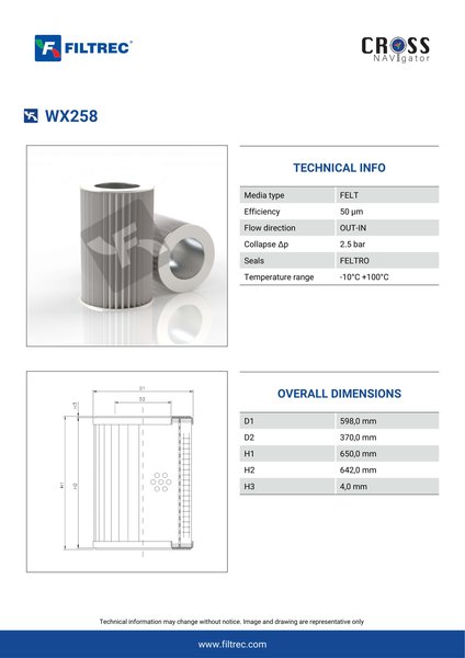 The efficiency of the element is shown using the Micron (µ) and Beta (β) ratings. The micron rating indicates the size of the particle being filtered and the beta rating the efficiency, calculated as 1/β.