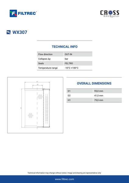 Genuine Filtrec WX307. This Filtrec element is designed to meet or exceed the quality and performance of brand OEM’s ensuring superior filtration performance and long-lasting durability.