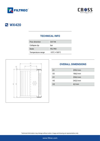 Genuine Filtrec WX420. This Filtrec element is designed to meet or exceed the quality and performance of brand OEM’s ensuring superior filtration performance and long-lasting durability.