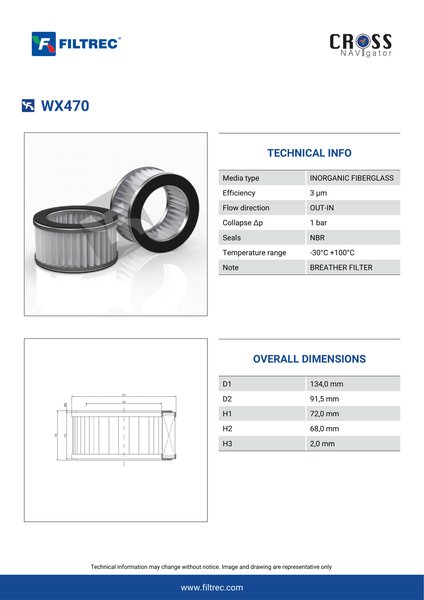 Genuine Filtrec WX470. This Filtrec element is designed to meet or exceed the quality and performance of brand OEM’s ensuring superior filtration performance and long-lasting durability.