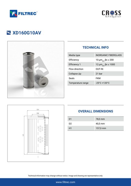 Genuine Filtrec XD160G10AV. This Filtrec element is designed to meet or exceed the quality and performance of brand OEM’s ensuring superior filtration performance and long-lasting durability.