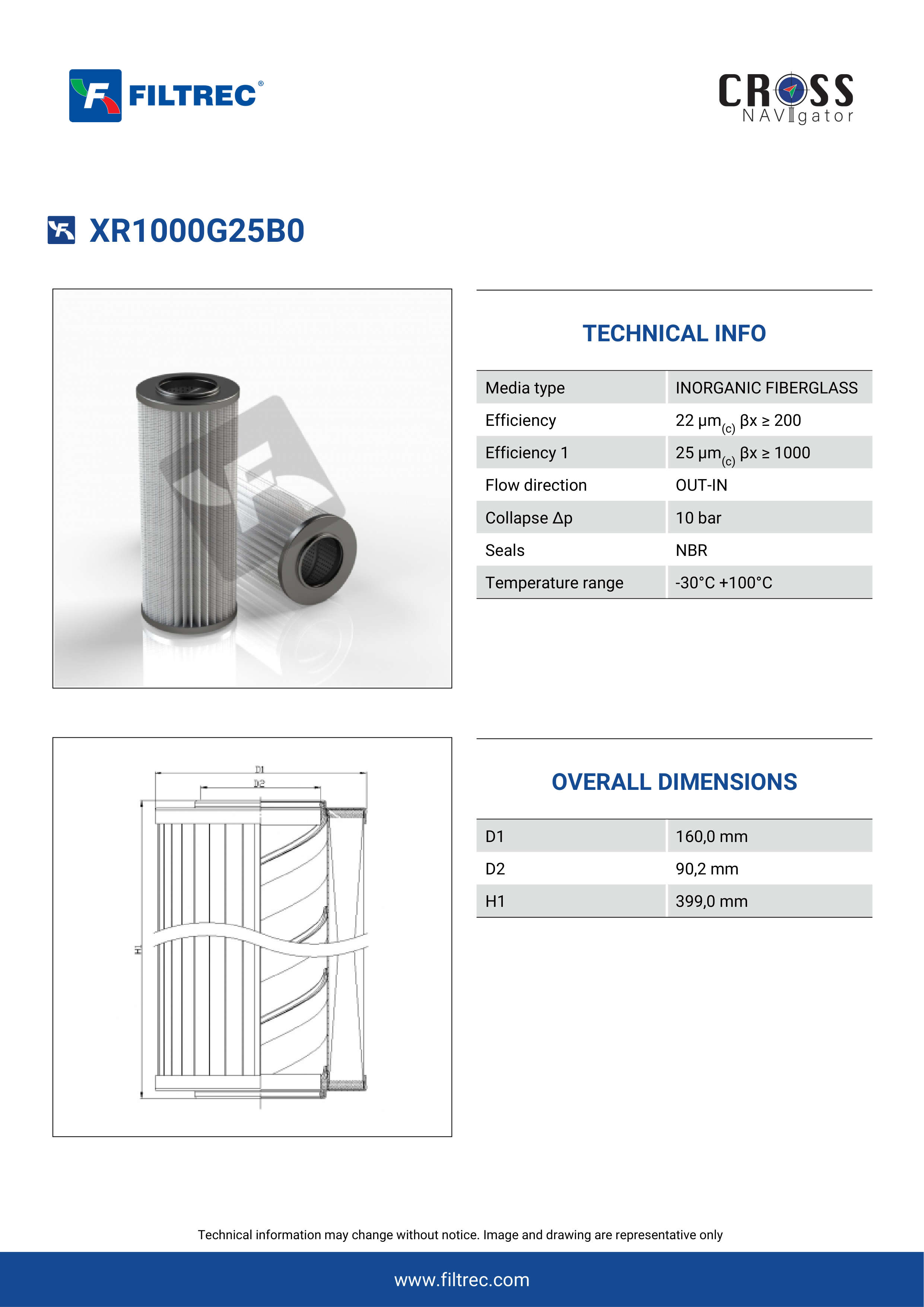 Genuine Filtrec XR1000G25B0. This Filtrec element is designed to meet or exceed the quality and performance of brand OEM’s ensuring superior filtration performance and long-lasting durability.